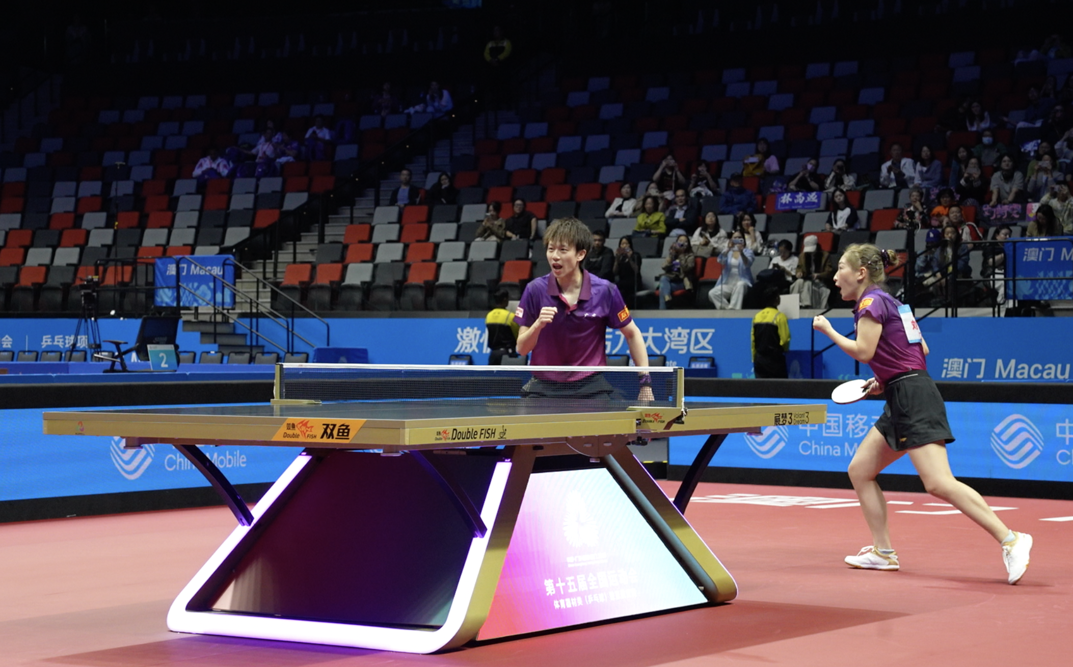11月11日晚,澳门银河综艺馆,第十五届全运会乒乓球混双1/4决赛,刘诗雯搭档林高远,对阵来自上海的孙铭阳和赵钊彦,重演2024年全国锦标赛混双决赛的巅峰对决,“诗与远方”组合4:1战胜对手,晋级半决赛。时隔一年,双方再次对决,林高远认为,“我们的战术更加坚定了。”