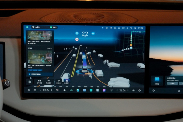 所以在VLA的相关PPT上,我们也能看到“短期表现波动,长期潜力无限”的表述,它确实具备持续进化与推理能力。而且从展示的魏牌全新蓝山智能进阶版智驾界面来看,除了显示路面信息之外,还显示了交互界面和更多智驾决策相关内容,这也是VLA的特色。