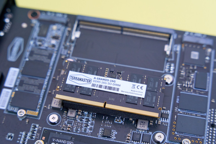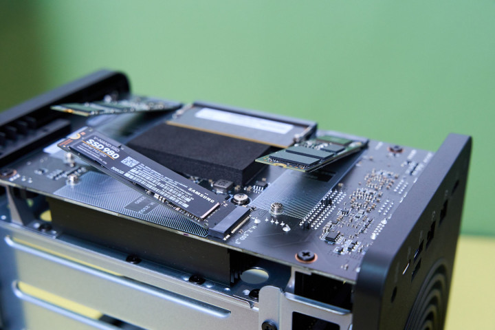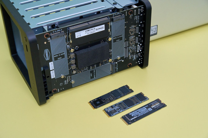 7个盘位附赠的另一好处是,让整机支持的最大容量提升至144TB,即4个机械硬盘盘位支持单盘最大30TB,3个M.2 SSD插槽支持单盘最大8TB。在硬盘涨价的大环境下,玩家可能短期没这么多硬盘把机器塞满,但给未来预留充裕的容量上限是必要的,把“我可以不用,但不能没有”的理念贯彻到底。